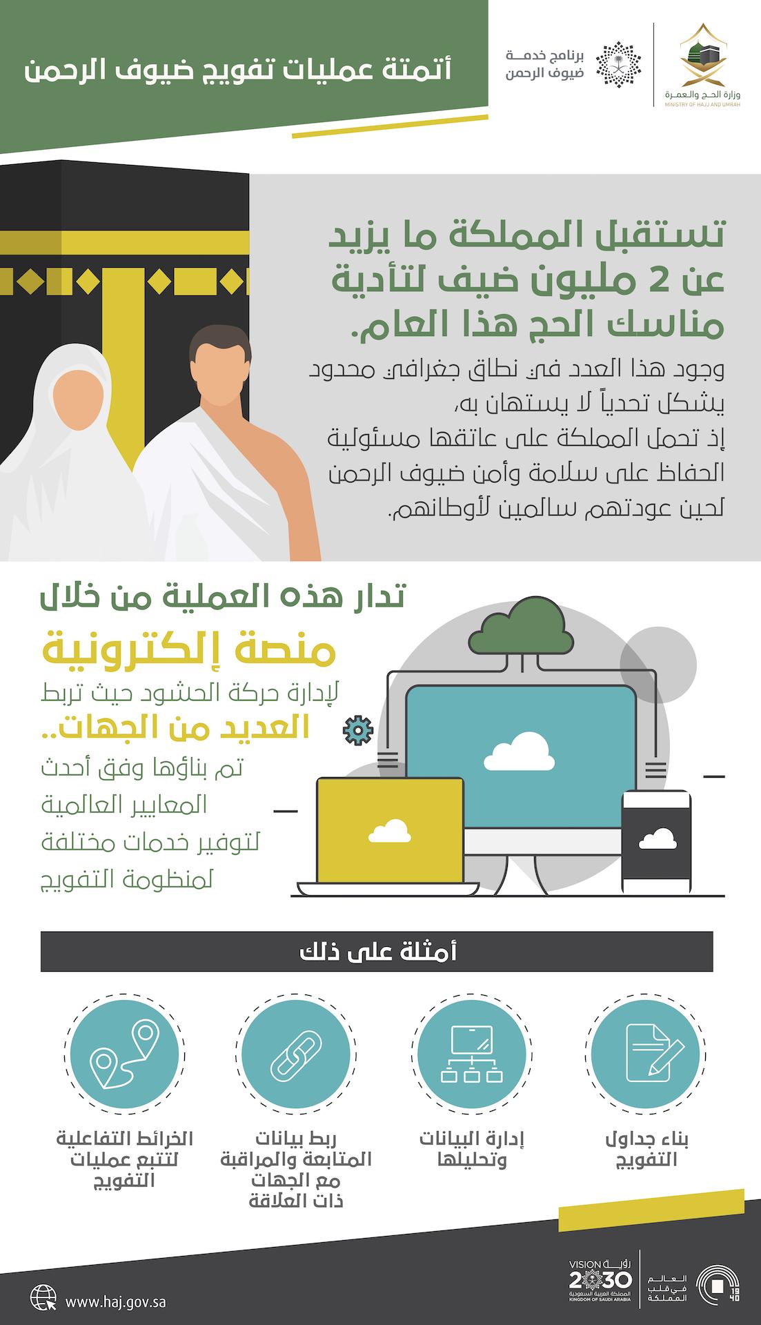 وزارة الحج والعمرة در توییتر أتمتة عمليات تفويج ضيوف الرحمن تتحقق من خلال منصة إلكترونية لبناء الجداول وإدارة البيانات وتحليلها والربط مع الحهات ذات العلاقة في المنظومة والخرائط التفاعلية لتتبع عمليات التفويج حج 1440