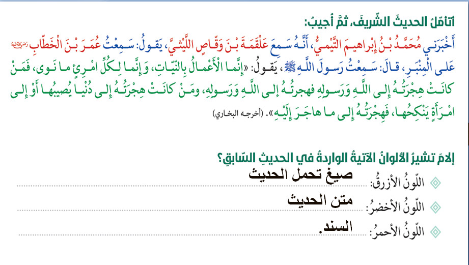 حل درس أقسام الحديث الشريف الصف الحادي عشر الفصل الثاني العلوم والتكنولوجيا