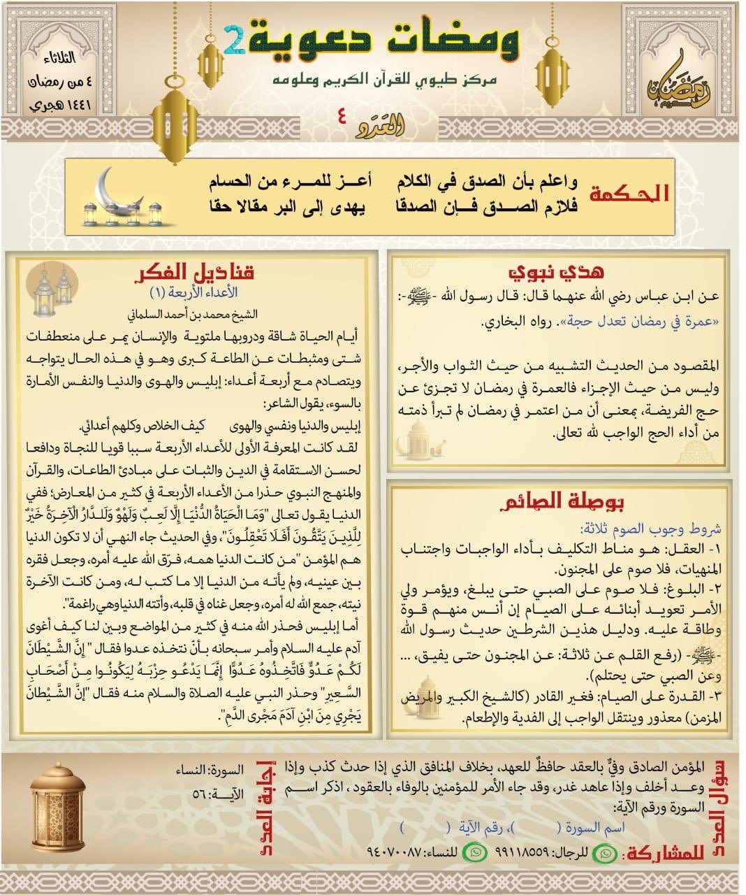 سالم الصلتي Salimalsalti On Twitter العدد 4 من مجلة ومضات دعوية مركز طيوي للقرآن الكريم وعلومه جنبكم الله الأعداء الأربعة وأعانكم عليهم