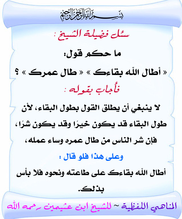 حكم قول أدام الله أيامك ابن عثيمين بطاقات دعوية منتديات الإمام الآجري