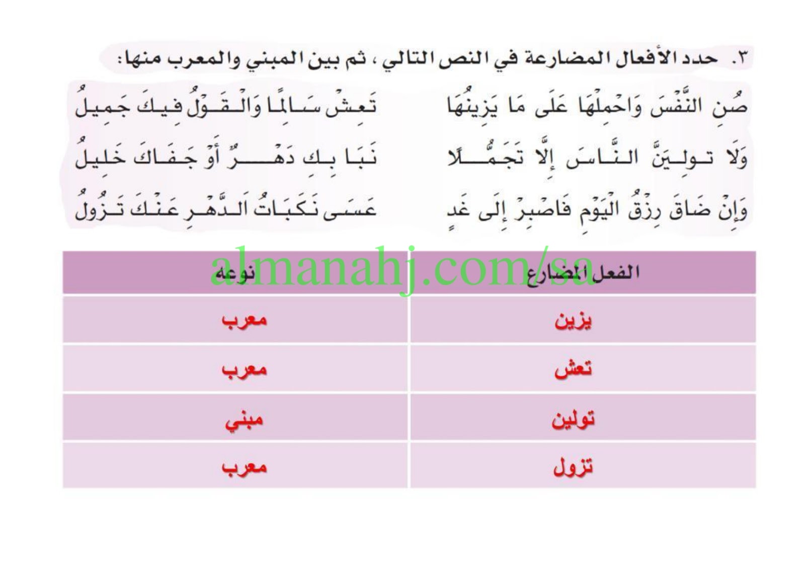 حلل كلمات النص التالي ثم بين المعرب والمبني منها