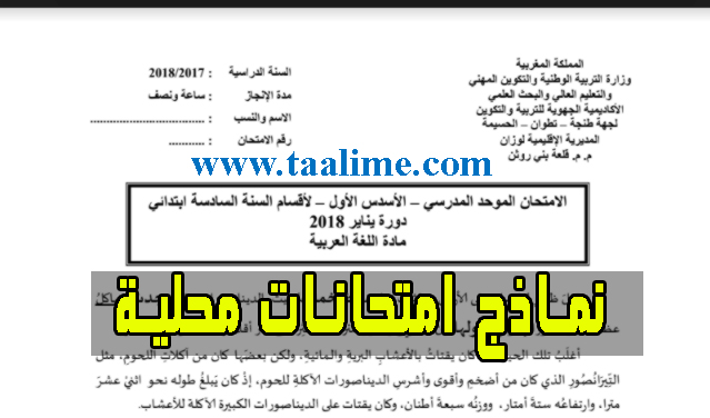 نماذج الامتحانات الموحدة المحلية مادة اللغة العربية المستوى السادس ابتدائي