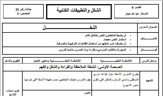 جذاذة مكون الشكل والتطبيقات الكتابية النخل المستوى السادس إبتدائي