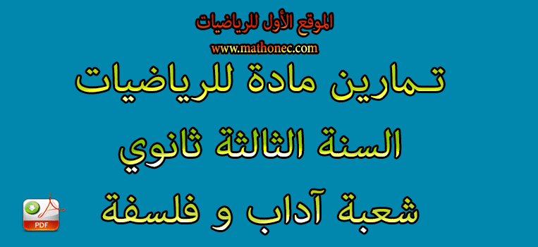 تمارين مع الحلول لمادة الرياضيات السنة الثالثة ثانوي شعبة آداب و فلسفة ولغات أجنبية