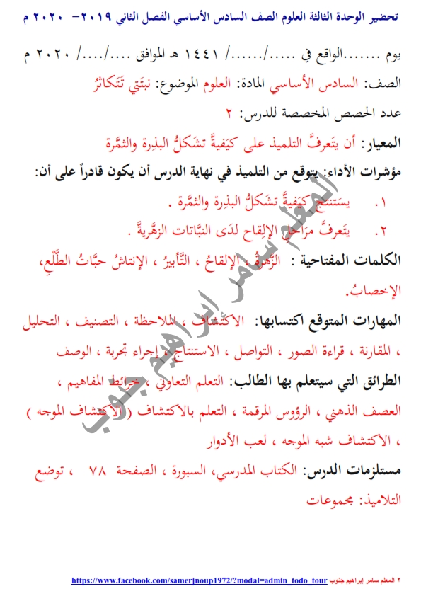 مهارات مادة العلوم للصف السادس الفصل الأول لعام 1437هـ 2016م المدرسة السعودية