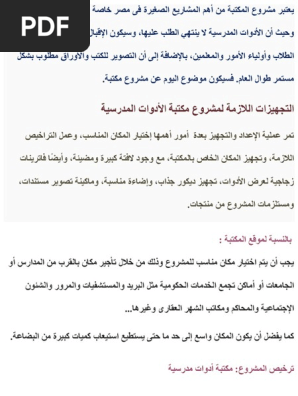 دراسة جدوى مشروع مكتبة ادوات مدرسية Pdf