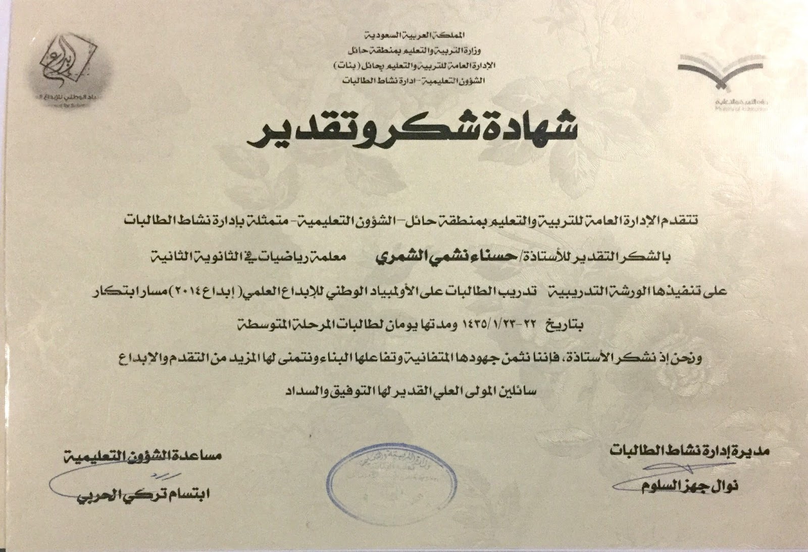 دورات وتصفيات لبرامج نشاط الطالبات صحيفة تعليم حائل التربوية