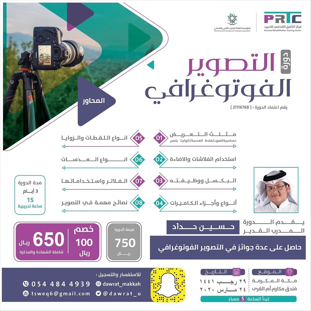 دورات تدريبية نسائية بمكة. مركز تطبيقات التدريب هو أحد المراكز الرائدة في التدريب في المملكة العربية السعودية ويقدم مجموعة متنوعة من دورات الإدارة في مختلف مدن المملكة. تمنح الشهادات طبقا للاختصاص الذي منحه المرسوم الملكي رقم م 6 بتاريخ 30 4 1400 لكل من مجالس الغرف السعودية والغرفة التجارية الصناعية لممارسة التدريب وفقا للمادتين 6 و 37 4 من نظام الغرف التجارية. شاهد أيضا في التعليم والتدريب. السلام عليكم ورحمة الله وبركاته يسر مركز آفاق الطموح للتدريب والاستشارات ان يقدم لكم عن بعد.